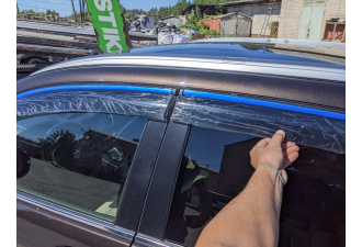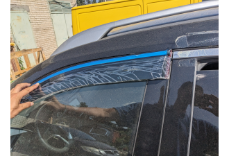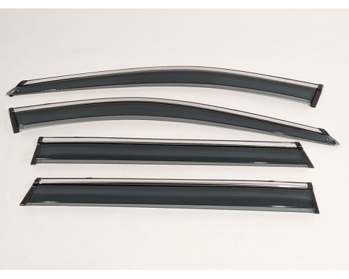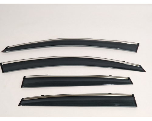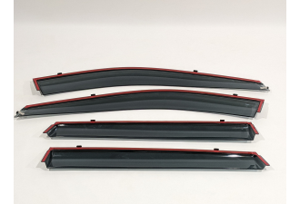 Дефлектори постачаються в фірмовій коробці у вигляді повного комплекту — 4 елементи (на всі двері), вже оснащені високоякісною